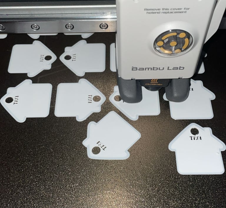 Esempi concreti di portachiavi NFC stampati in 3D.
